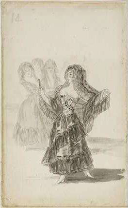 Hacia el dibujo B.28 (Grupo de majas de paseo) el pintor de Fuendetodos comenzó a experimentar con la colocación de las figuras sobre un fondo oscuro rectangular, recurso que mantuvo hasta el final del cuaderno, explica la citada nota de prensa.