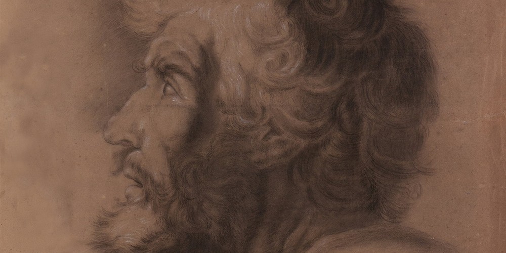 Detalle de "Cabeza de hombre" (Francisco Bayeu, ca. 1775, Colección Félix Palacios), uno de los dibujos que comprende la muestra.