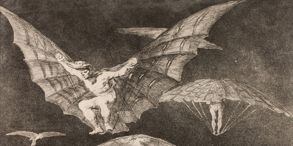 Detalle de "Disparate n.º 13. Modo de volar" (Goya, 1815-1824).Desde el 31 de enero hasta el 28 de junio, se puede visitar en el Centro de Arte Dos de Mayo de Madrid la exposición “Humor absurdo: una constelación del disparate en España”. Una muestra comisariada por Mery Cuesta que, con los Disparates de Goya como punto de partida, y pasando por supuesto por Gómez de la Serna, desgrana hasta la más pura actualidad la historia del humor absurdo español a través diferentes puntos de vista —cine, vanguardias, cómic, humor gráfico, internet, etc.—. En total la exposición refleja más de 110 autores, entre los que se encuentran José Gutiérrez Solana, Faemino y Cansado, Miguel Noguera, Amparo Segarra, Millán Salcedo (Martes y Trece), Miguel Brieva, Flavita Banana, Manuel Summers, M.ª Dolores de la Fe, Cifré, Hidrogenesse o Joaquín Reyes.