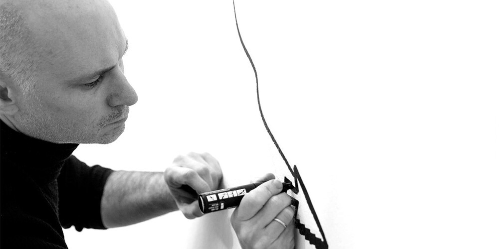 El ilustrador David Guirao trabajando en una de sus obras murales. Foto: Made in Zgz.