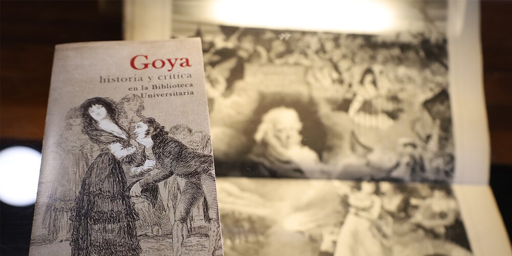 La Biblioteca universitaria mantiene un especial vínculo con la figura de Goya. En sus fondos se conservan las series de grabados de los Caprichos, Desastres y Proverbios en sus primeras ediciones, obras que forman parte del patrimonio artístico más estimado de la Universidad. Pero además la biblioteca reúne una importante colección de obras especializadas sobre el artista.