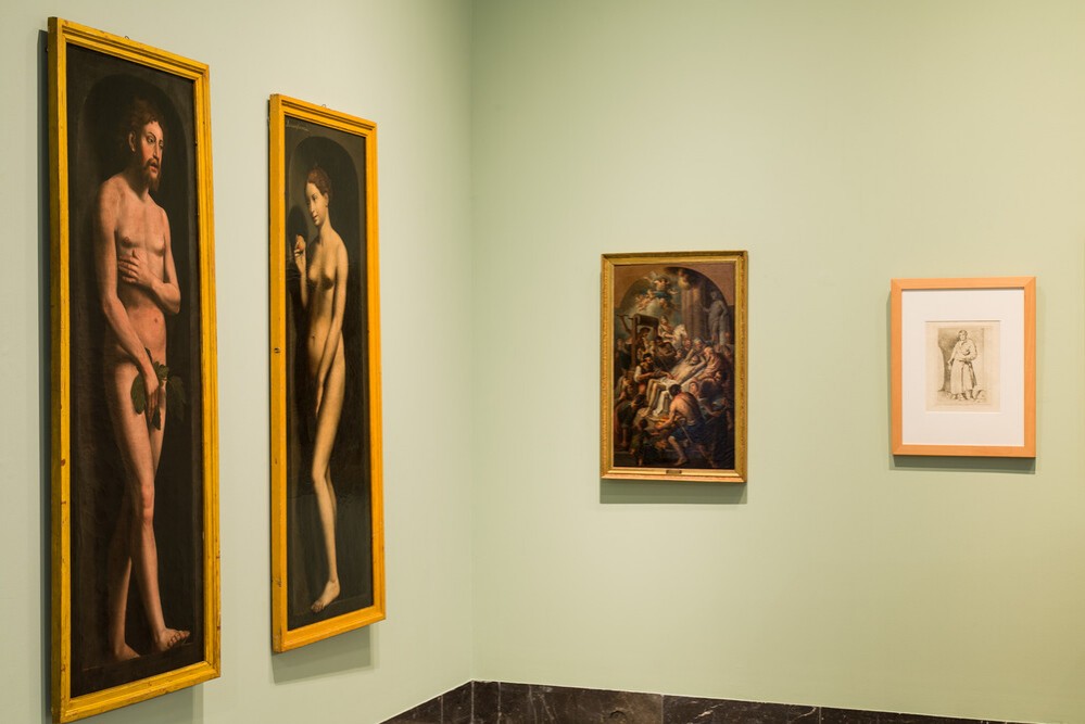 El visitante podrá encontrar dibujos de Pompeo Batoni, Francisco Bayeu, Maella y Salesa, así como estampas que reproducen obras de Rafael y Mengs, conjunto que se completa con un aguafuerte de Goya (1778) que versiona al Esopo de Veláquez. También se muestra un óleo representando el martirio de san Erasmo (1790), debido al pincel del valenciano José Vergara cuyo hijo lo regaló a la Academia de San Luis para que sirviera de modelo para ser copiado.