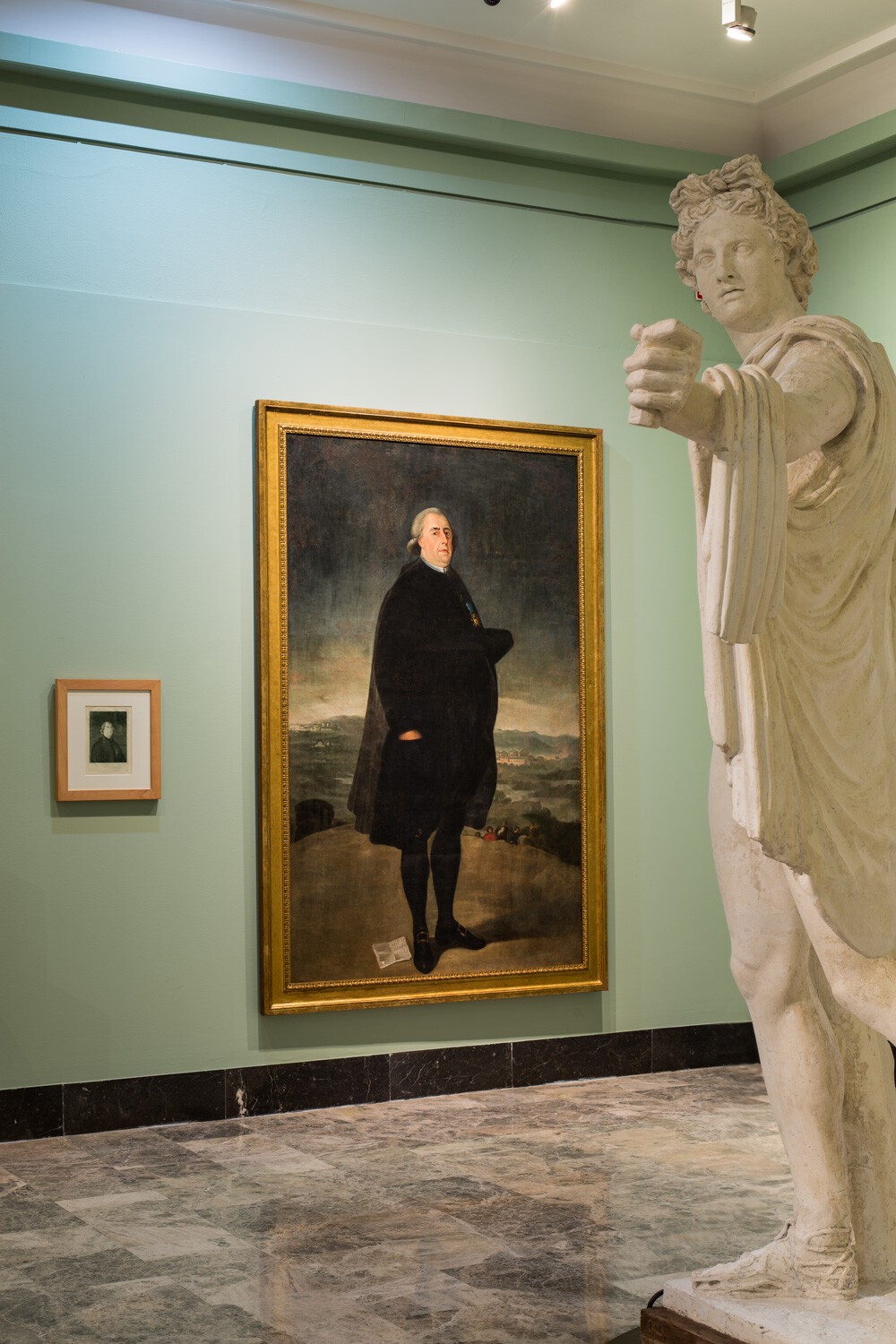 Sala de la Academia e Ilustración. Foto: José GarridoUn papel definitivo en la implantación de la nueva estética lo tuvieron los vaciados de yeso de obras maestras de la antigüedad clásica, de los que se muestran el Laocoonte y el Apolo Belvedere, dos magníficas piezas del siglo XVIII que adquirió Goicoechea para dotar a la escuela de dibujo que patrocinó en Zaragoza. Estas dos monumentales esculturas han sido restauradas en el Museo de Zaragoza para la ocasión.