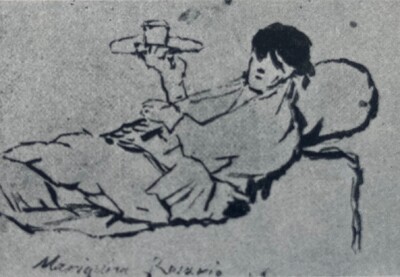 Véase ¡Ay! ¡Ay! ¡Que me canso! Apunte esquemático de un muchacho con una honda. En el reverso de la hoja existe otro dibujo titulado Mujer sobre una cama.