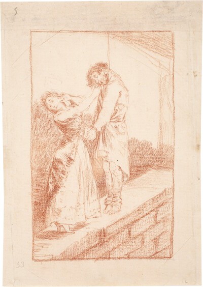 El dibujo preparatorio para este grabado se encuentra en el Museo Nacional del Prado de Madrid.