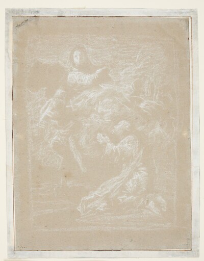 Este dibujo preparatorio tiene una composición muy similar a la del lienzo definitivo que pintó Goya para el lateral derecho del altar mayor de la Iglesia parroquial de la Asunción de Nuestra Señora de Valdemoro, altar mayor que, encargado por el ministro Pedro López de Lerena, se concluyó en 1790 y en el que colaboró con sus cuñados Francisco Bayeu, que se encargó de la pintura central, y Ramón Bayeu, que se ocupó del lienzo lateral izquierdo. No obstante, a pesar de las similitudes con la obra definitiva, algunos autores como Camón Aznar dudaron en el pasado de la autoría del dibujo por parte de Goya, algo hoy ya superado, pues la pieza mantiene la técnica empleada en varias ocasiones por el pintor para otros estudios preparatorios y además la trayectoria del dibujo tras su creación resulta clara e indiscutible, pues fue propiedad de los descendientes del artista. De hecho, tanto Manuela Mena como el propio Museo del Prado lo consideran obra autógrafa indiscutible de Goya (volumen II del Catálogo razonado de los dibujos de Goya).