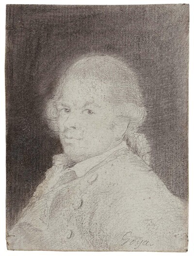 Este pequeño autorretrato dibujado por el artista aragonés todavía en los primeros años de su carrera en Madrid, presenta a un Goya de unos 35 años poco más o menos, que se dirige hacia el espectador con pose aplomada aunque con una mirada un tanto desconfiada que, según Julián Gállego, podría deberse al reojo impuesto por la necesidad de verse en el espejo a la vez que miraba el papel. En cualquier caso, se trata claramente de un autorretrato de autoafirmación personal que, por el aspecto que presenta el personaje y su indumentaria, habría que vincular con sus primeros éxitos en la Corte, en concreto con su nombramiento como académico de mérito de la Real Academia de San Fernando el 7 de mayo de 1780 o con su participación en el gran proyecto decorativo de la Iglesia de San Francisco el Grande de Madrid en 1781-1783 mediante la realización del gran lienzo de la Predicación de San Bernardino de Siena, en el que precisamente se autorretrató con una apariencia muy cercana a la que refleja el presente dibujo.