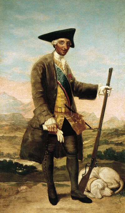 Existen dudas acerca de la autoría de esta obra y de otras copias/réplicas delCarlos III cazador de inferior calidad, conservadas en el Museo Nacional del Prado, la colección Argentaria (Madrid) y el Museo de Historia de Madrid.