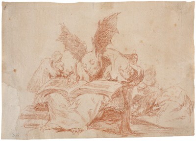 Se conserva un dibujo preparatorio de este grabado en el Museo Nacional del Prado.