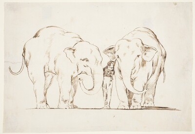 En un principio, Goya se planteó colocar al gran animal a la izquierda de la composición, aunque finalmente rectificó y lo dispuso a la derecha. El dibujo es muy perfecto con unas líneas que sugieren la rugosidad de la piel del elefante.