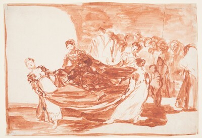 Se conserva el dibujo preparatorio de la presente estampa, titulado también Disparate femenino.