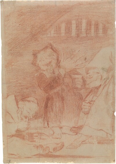 Se conserva un dibujo preparatorio de este grabado en el Museo Nacional del Prado.