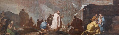 Véase también Revelación a San Joaquín y Santa Ana para el comentario sobre la serie completa de las pinturas de esta iglesia.