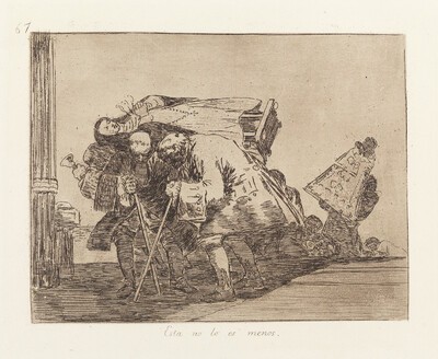 Goya ejecuta el dibujo preparatorio del grabado nº 67, Esta no lo es menos prestando una mayor atención a lo que tiene lugar en primer término. De esta manera pergeña con mayor precisión a los personajes, probablemente aristócratas, que llevan sobre sus hombros una imagen de la Virgen.