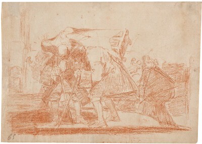 Para poder realizar una adecuada lectura de este grabado es necesario analizar también el que le precede, el nº 66, Extraña devoción. Tanto los títulos como la composición empleada vinculan a ambas estampas y proponen una relación de analogía entre ellas. En los dos grabados se ve cómo una imagen sagrada está siendo llevada en el primer caso por un asno, y en el segundo por un conjunto de miembros de la aristocracia.