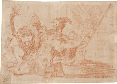 Se conserva un dibujo preparatorio de este grabado en el Museo Nacional del Prado.