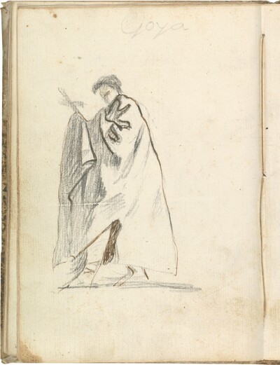 Esta figura forma pareja, haciendo perfecto pendant, con la que ocupa la página precedente del taccuino goyesco (p. 126), otro sacerdote o diácono de los primeros tiempos del cristianismo que se dispone en posición inversa, de perfil hacia la izquierda, haciendo de contrapeso visual. La principal diferencia radica en que en este caso sostiene una cruz.