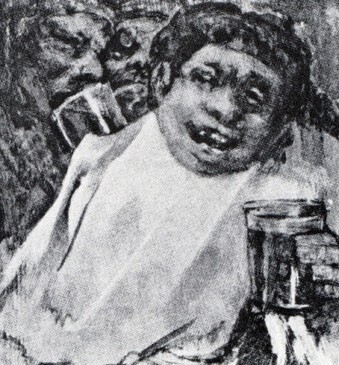 Un fraile y una vieja aparecen hablando. La mujer se cubre la cabeza con un velo o mantilla azul y está mirando al espectador con un gesto horrorizado mientras se aleja hacia atrás. A su lado, el fraile hace una mueca con la boca como si estuviera emitiendo un grito. Este gesto es similar al que hace el monje de la derecha en Dos monjes, perteneciente a las Pinturas negras. Igual que las pinturas de la Quinta del Sordo, estos personajes son también feos, desagradables e inquietantes.