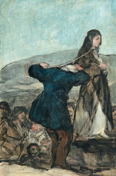 Un grupo de pinturas sobre tabla, cuya autenticidad goyesca ha sido puesta en duda por algunos estudiosos, es difícil de datar, ya que podrían haber sido realizadas durante los últimos años que estuvo Goya en Madrid o ya durante su exilio en Burdeos. Gudiol opina que pudieron ser ejecutadas durante las semanas que el pintor permaneció oculto en casa de José Duaso. El conjunto lo forman, además de la obra que nos ocupa, Ejecución de una bruja, El duelo, El herido, Bandidos matando a hombres y mujeres y Carnaval.