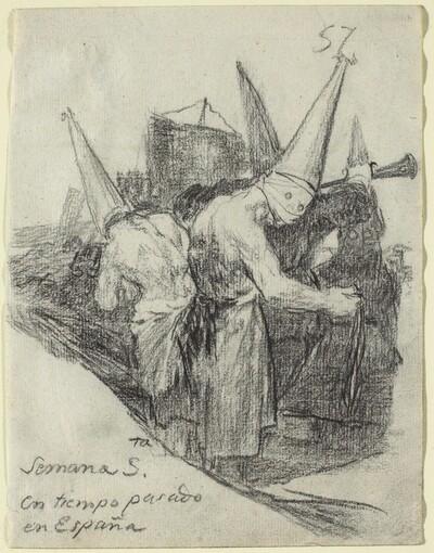 El dibujo representa una procesión religiosa, un tema frecuente en la obra del autor aragonés. Es el caso de la pintura Procesión de disciplinantes, o de dibujos como Procesión de monjes (F.44). Asimismo, es otra procesión la que protagoniza el dibujo Semana Santa en tiempo pasado en España (G.57), en el Cuaderno G.