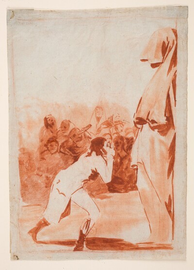 El dibujo pasó por herencia en 1828 a Javier Goya, hijo del pintor, y en 1854 a Mariano Goya y Goicoechea, nieto del artista. Posteriormente, lo poseyeron Valentín Carderera (Madrid, ca. 1861), Isidoro Brun (¿antes de 1879?) y Pedro Fernández Durán (¿1897?), quien por disposición testamentaria otorgada el 6 de julio de 1923 se lo legó al Museo del Prado. Tras la aceptación de la donación, el dibujo ingreso en el citado museo por Real Orden de 31 de marzo de 1931.
