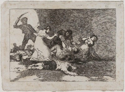 Este dibujo sirvió como estudio preparatorio para la realización del grabado Infame provecho, que finalmente no se incluyó dentro de la serie, seguramente por la deficiente calidad de la plancha y del que sólo hay una prueba de estado.