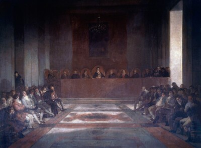 Boceto para La Junta de Filipinas, obra encargada a Goya para conmemorar la asamblea general que la Real Compañía de Filipinas celebró el 30 de marzo de 1815 en Madrid.