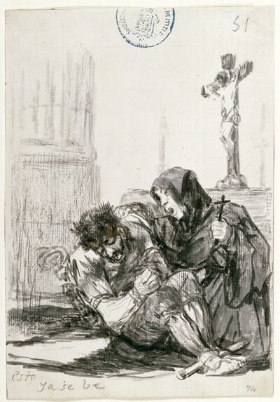 La caridad cristiana, la compasión y el arrepentimiento parecen ser la idea principal del dibujo, frente a la interpretación de un dibujo anterior de idéntico tema, Esto ya se ve (C.51). Otras referencias directas a la ejecución se encuentran en las guillotinas de los dos dibujos del Cuaderno G titulados Castigo francés (G.48 y G.49), especialmente en el segundo, en el que aparece un sacerdote con un crucifijo.