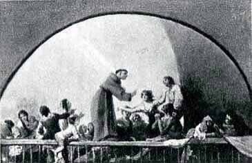 Del fondo sobresale un árbol, elemento ambiental que aparecerá representado en las pinturas de la cúpula. De igual modo, se observa el pañolón que sobresale por la barandilla y que también se encuentra en el fresco.