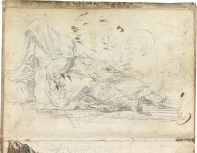 Primer apunte dibujado para el lienzo titulado La muerte de San Francisco Javier, pintado por Goya hacia 1771-1772 o poco después y conservado en el Museo de Zaragoza.