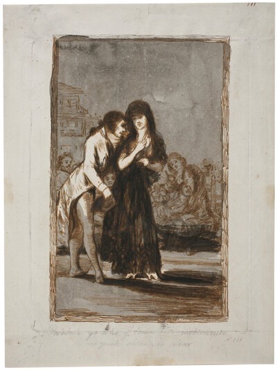 Tal y como sucede en otros grabados de esta serie, Goya alude veladamente a la prostitución y en este caso se refiere también a la ingenuidad de algunos hombres que no son capaces de distinguir cuándo se encuentran ante una prostituta y cuando no. La corteja sin ser consciente de que el interés de la relación es, para la mujer, puramente económico. El desarrollo de la escena está siendo contemplado por una anciana en el fondo del grabado que, con bastante probabilidad, podría ser la alcahueta.