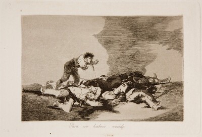 Apunte ligero en el que Goya pergeñó una imagen que respetará casi en su totalidad en el grabado.