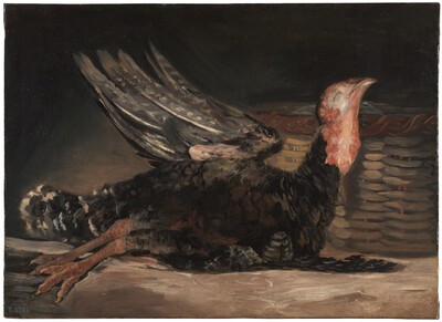 En este bodegón Goya pintó la figura recién muerta de un pato con el ala izquierda levantada y apoyando la cabeza suavemente sobre una superficie curva como si durmiera. Sobre fondo oscuro este animal está pintado a base de cortas pinceladas a diferencia de las utilizadas en el fondo y superficie de la composición, mucho más empastadas y uniformes. El color blanco del ala extendida da gran luminosidad a este lienzo creando un juego de efectos cromáticos muy característico en la obra del pintor aragonés.