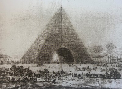 Para Chueca Goitia sería un proyecto posterior a 1808, por lo que podría tratarse de un mausoleo a las víctimas del 2 de mayo. Para Gassier y Wilson es anterior a esta fecha, por lo que este tema sería imposible. Usón apunta a la idea de que este edificio fuera un proyecto de mausoleo pensado en honor a la duquesa de Alba, pues más tarde realizará un proyecto de mausoleo dedicado a su memoria en forma de pirámide. En cualquier caso, la influencia formal egipcia es evidente.