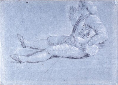El presente dibujo está realizado en el reverso de otro de cronología algo anterior: Majo sentado fumando (1776), estudio preparatorio de una de las figuras del cartón para tapiz La merienda (1776).