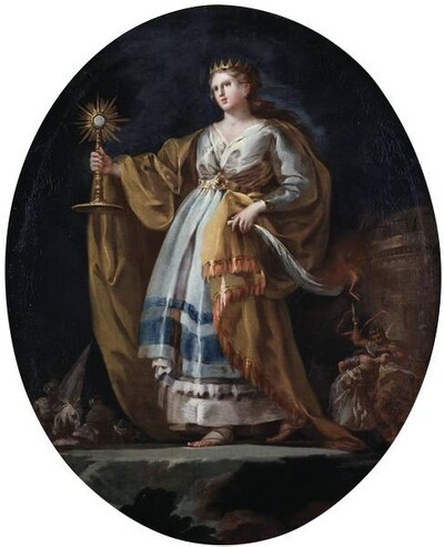El lienzo final de Santa Bárbara que partió de este estudio preparatorio ha sido relacionado, por su clasicismo, el tipo femenino utilizado y su monumentalidad, con el ciclo de pinturas murales de la Iglesia de la Cartuja de Aula Dei de Zaragoza (1772-1774), así como con la pintura ligeramente anterior de Aníbal vencedor, que por primera vez mira Italia desde los Alpes (1771).