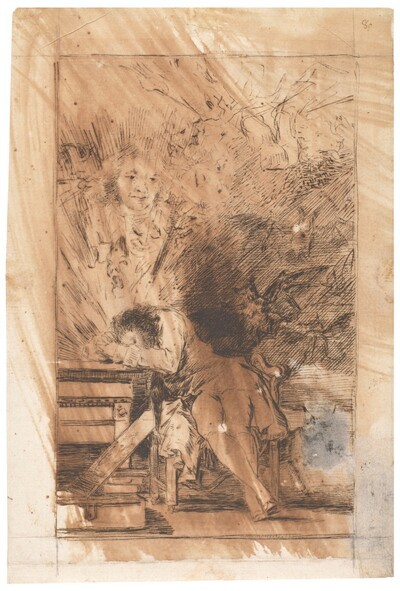 La serie de dibujos denominada Sueños se enmarca dentro de los estudios preparatorios que Goya elaboró para grabar Los Caprichos, cuyo primer germen lo encontramos en algunos dibujos del Cuaderno A y del Cuaderno B.