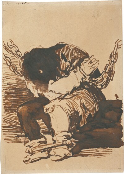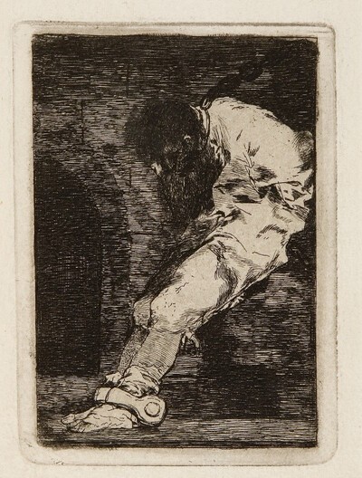 La figura que protagoniza este grabado, a pesar de la dureza del tema afrontado, tiene una gran dignidad que recuerda algunos trabajos precedentes que Goya podría haber conocido. Uno de ellos es el grabado anónimo realizado a partir de El interior de una prisión (siglo XVI, Museum of Fine Arts, Boston) de Giulio Romano (Roma, 1499- Mantua, 1596). Es posible también que el pintor aragonés tuviese presente a la hora de realizar este grabado los ambientes inquietantes y lúgubres de Las cárceles de Giambattista Piranesi (Mogliano veneto, Treviso, 1720- Roma, 1778).