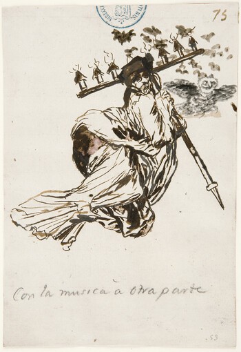 Un caballero en plaza quebrando un rejoncillo con ayuda de un chulo (Tauromaquia A) (dibujo preparatorio)