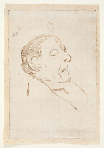 Tanteo de cabeza caricaturesca de perfil (¿Javier Goya?)