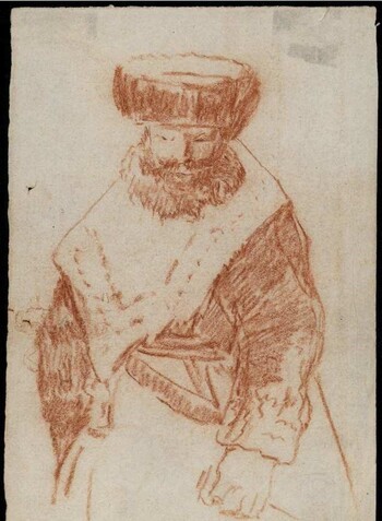 Figura barbada de perfil, con capa y gorro (atribuido a Javier Goya)