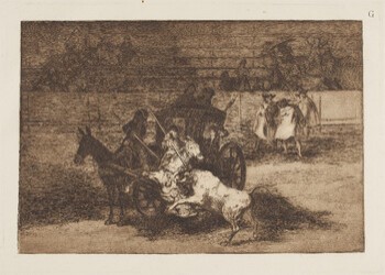 Combate de un coche enjaezado con dos mulos (Tauromaquia G)